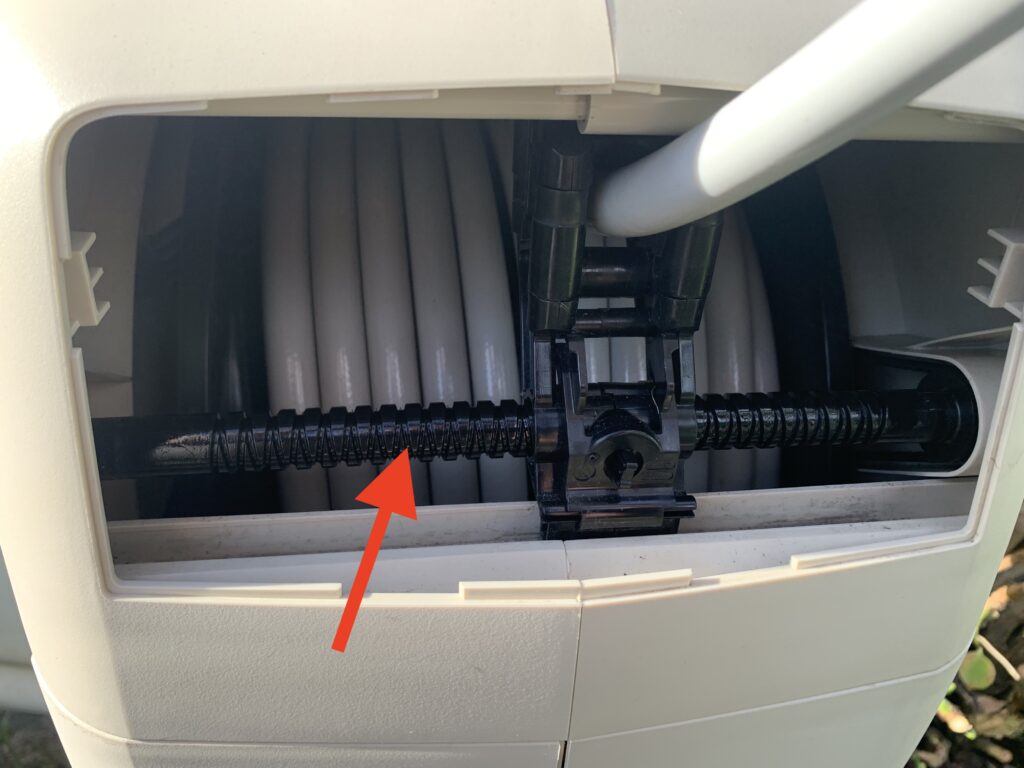 About a year or maybe a year and a half into owning a Hoselink Evolve hose reel, the thing started squealing quite loudly when pulling hose out. It had now gotten to a point where I had to do something about it! There’s nothing about this on the Hoselink troubleshooting instructions so I hope you find this useful.